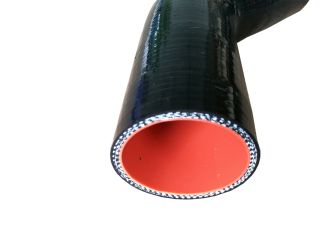 Codo reductor de silicona de 45 grados para manguera Diseñado para ofrecer resistencia y rendimiento en aplicaciones personalizadas de tuberías de refrigerante. El caucho de silicona con refuerzo de poliéster de 3 capas (4 capas en tamaños de 51 mm y superiores) hace que estas mangueras sean resistentes, fiables y flexibles a temperaturas de -50 °C a +200 °C.